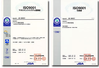 2000年6月2日に、ISO 9001:94年版に認証登録しました。 その後、2010年6月6日にISO 9001:08年版へ移行し、お客様に満足していただける品質と技術の提供に、 全社員あげて取り組んでいます。